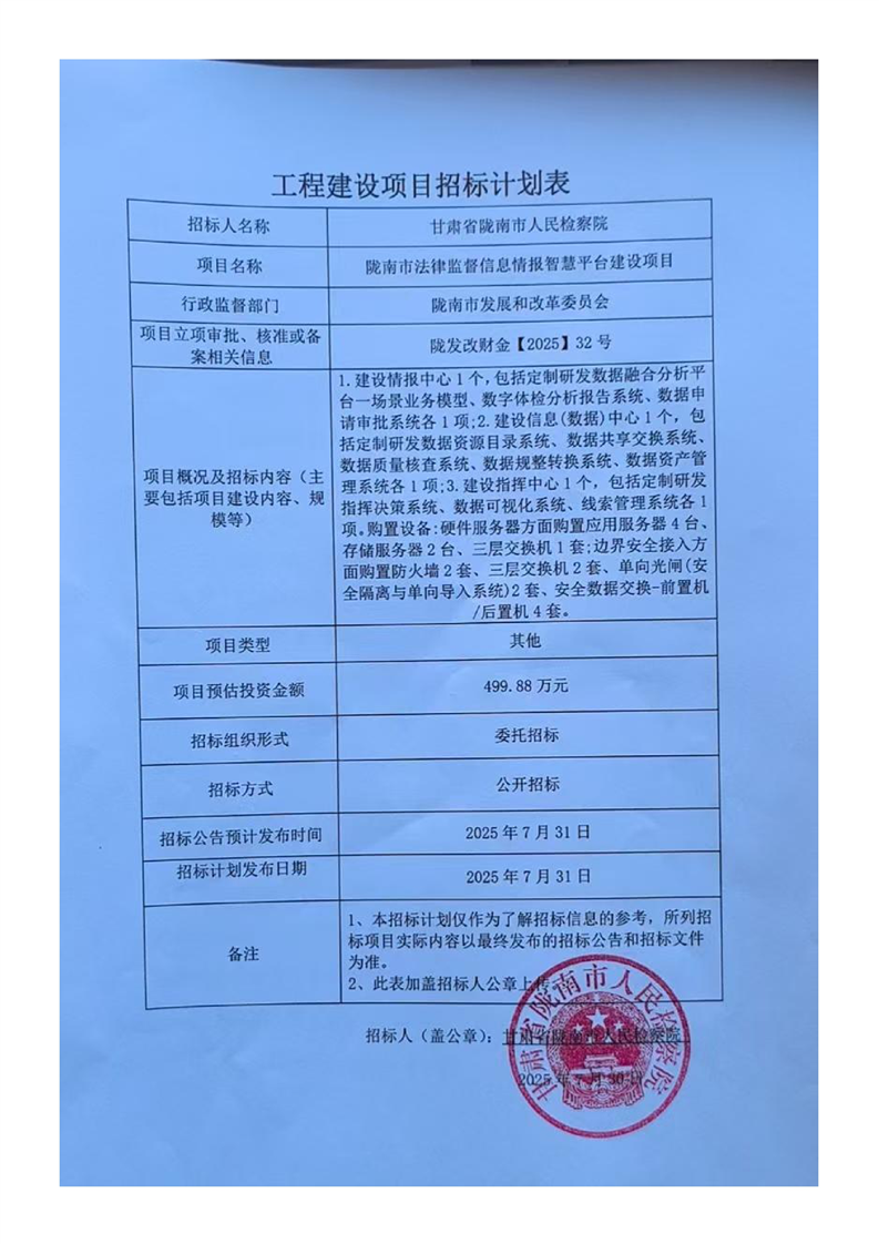 隴南市法律監(jiān)督信息情報(bào)智慧平臺(tái)建設(shè)項(xiàng)目