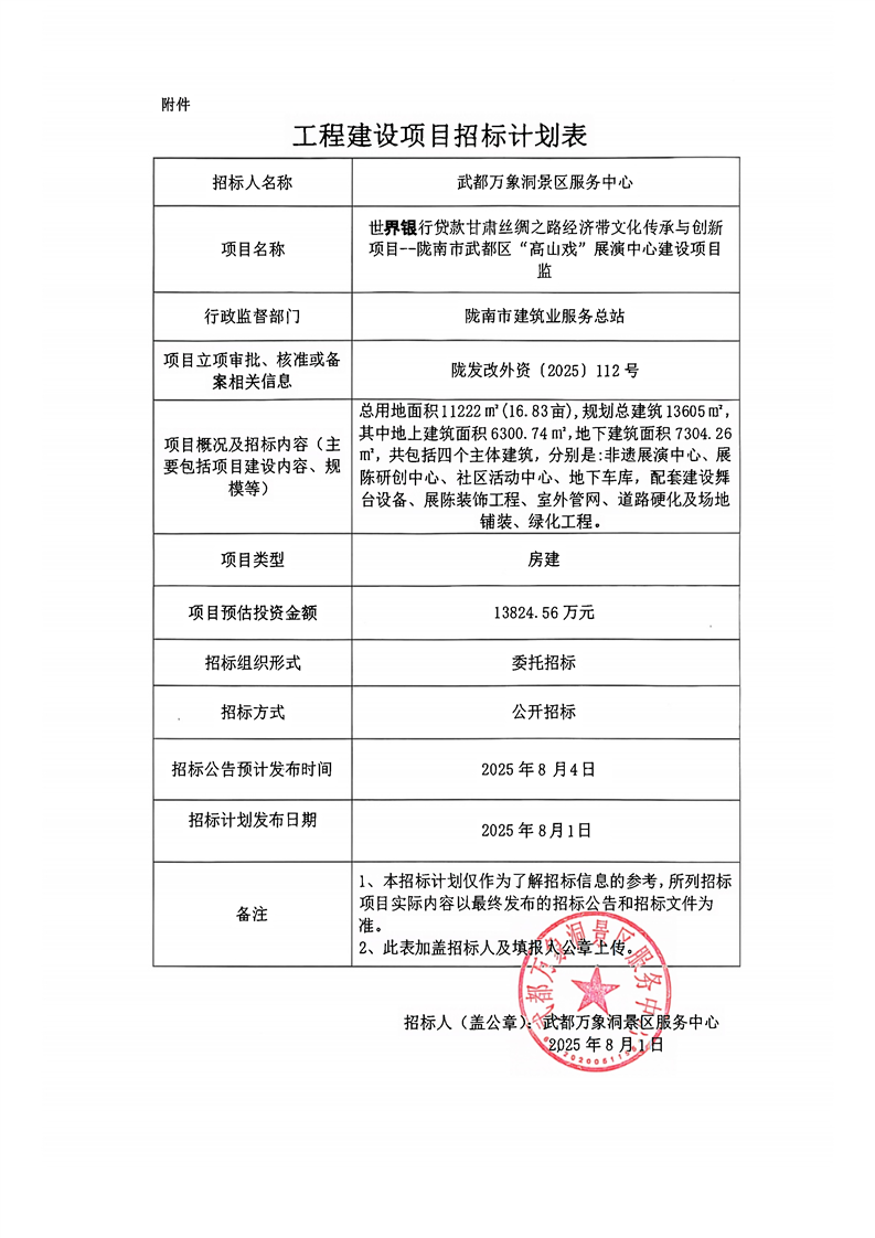 世界銀行貸款甘肅絲綢之路經(jīng)濟帶文化傳承與創(chuàng)新項目--隴南市武都區(qū)“高山戲”展演中心建設項目監(jiān)理