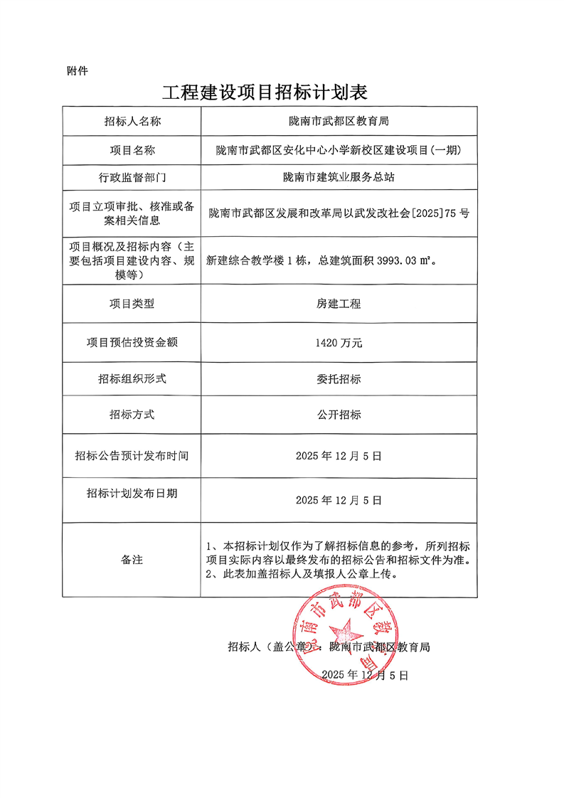 隴南市武都區(qū)安化中心小學新校區(qū)建設項目(一期)