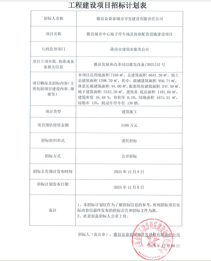 徽縣城市中心地下停車場及商業(yè)配套設(shè)施建設(shè)項目