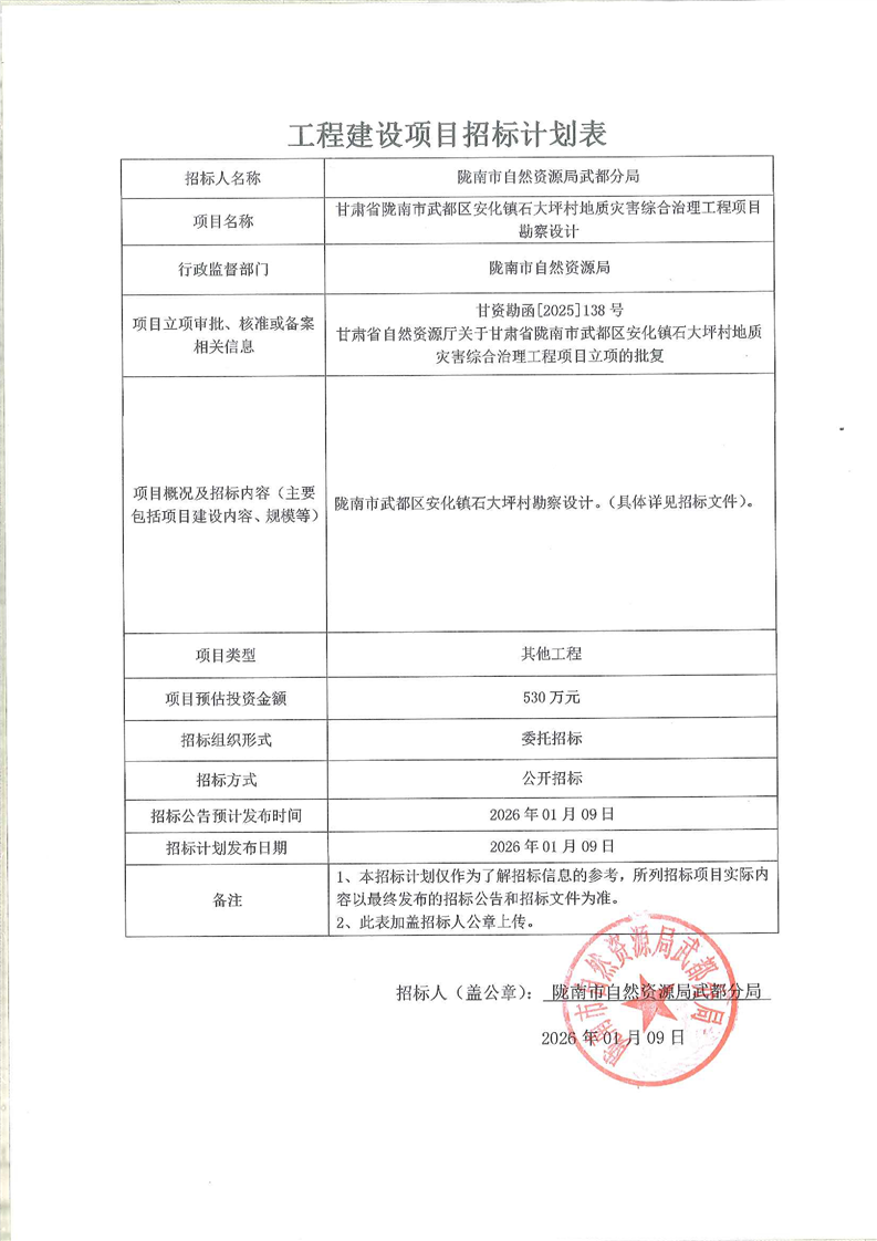 甘肅省隴南市武都區(qū)安化鎮(zhèn)石大坪村地質(zhì)災(zāi)害綜合治理工程項目勘察設(shè)計