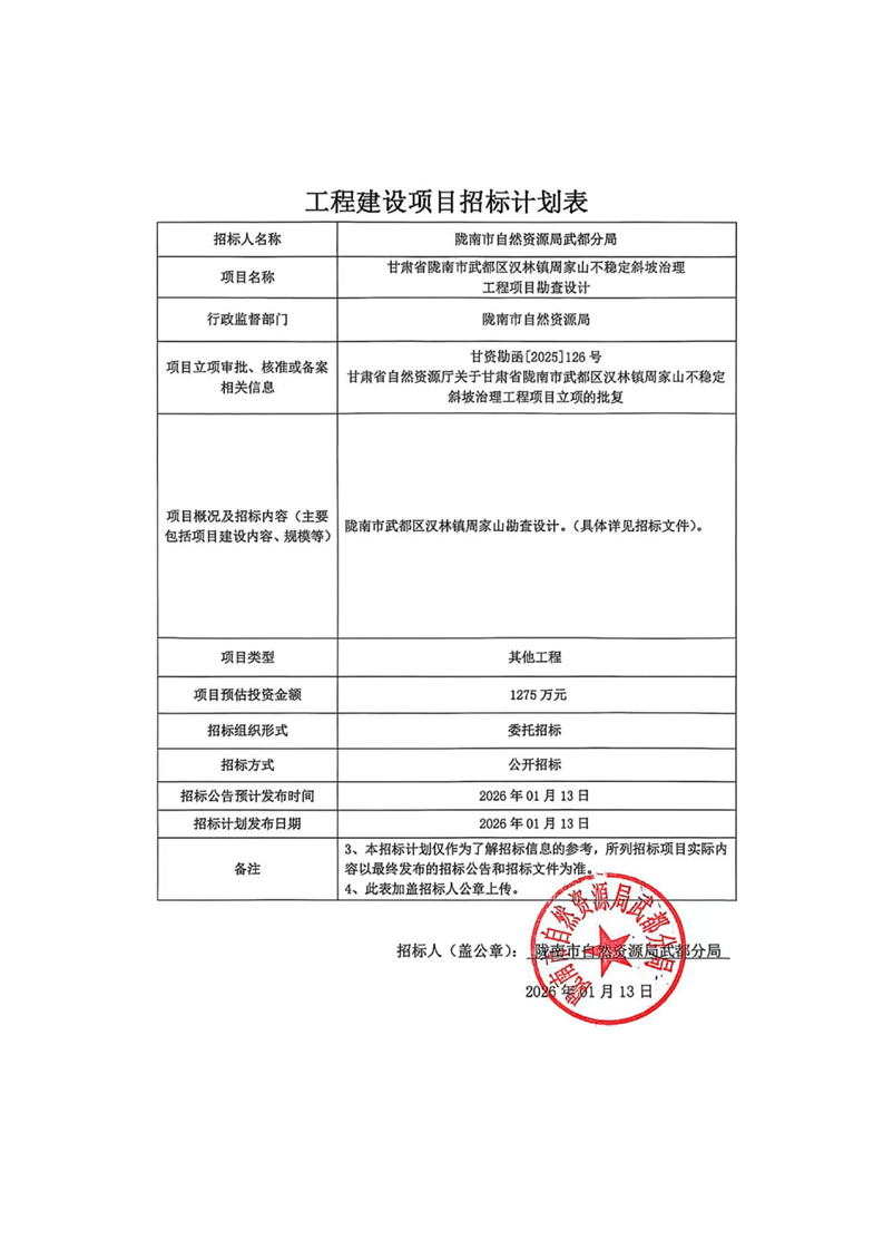 隴南市武都區(qū)漢林鎮(zhèn)周家山不穩(wěn)定斜坡治理工程項(xiàng)目勘查設(shè)計(jì)