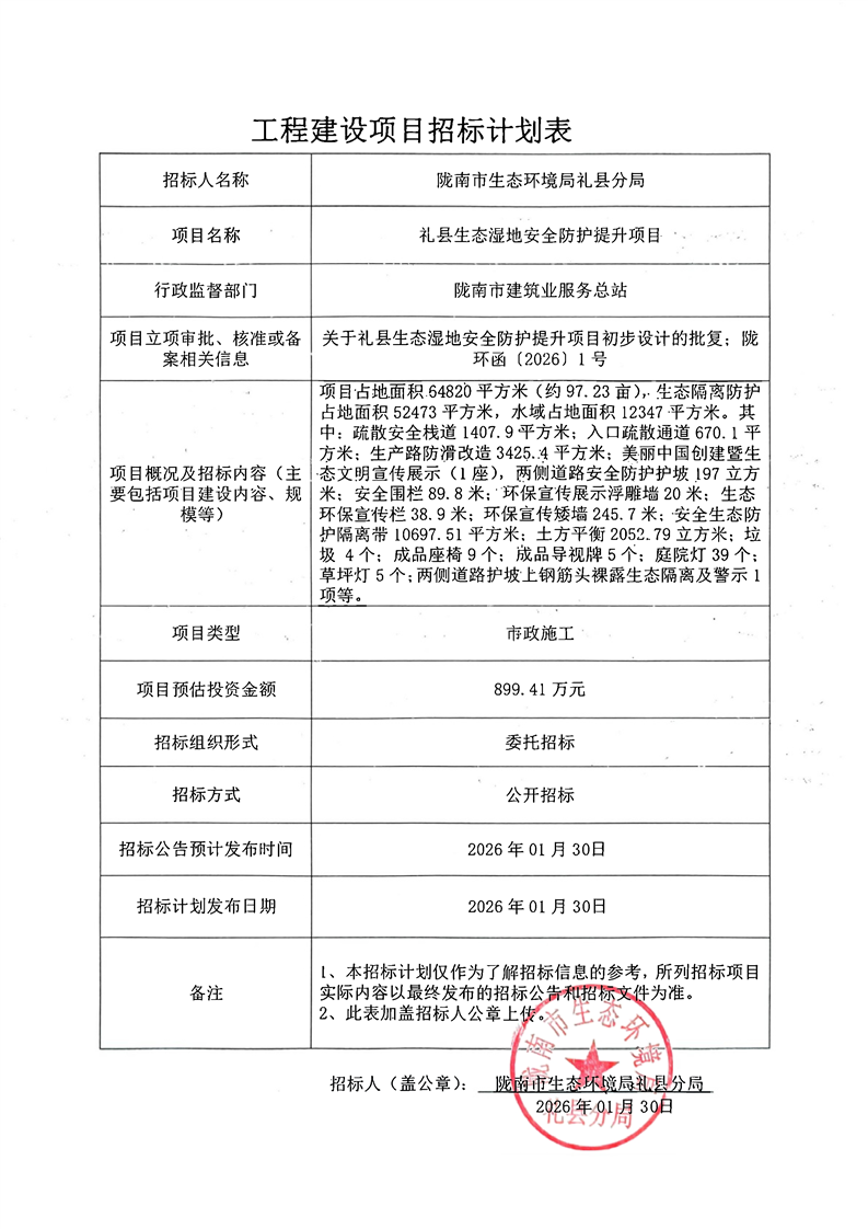 禮縣生態(tài)濕地安全防護(hù)提升項目
