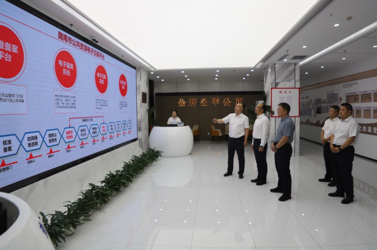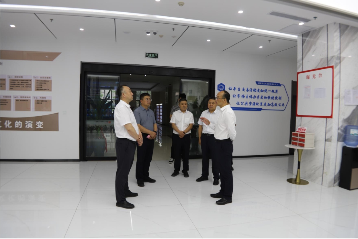 在調(diào)研過程中,李榮先后察看了交易服務(wù)大廳、網(wǎng)上開標(biāo)直播大廳、專家抽取室、封閉評(píng)標(biāo)區(qū)、多功能交易廳、黨建活動(dòng)中心、行業(yè)監(jiān)管區(qū)、電子檔案管理室等運(yùn)行情況,現(xiàn)場(chǎng)認(rèn)真聽取了有關(guān)情況的匯報(bào)。對(duì)交易中心在場(chǎng)所設(shè)施保障、推行全流程電子化交易、黨建與業(yè)務(wù)融合發(fā)展、營造良好營商環(huán)境等方面工作給予了充分肯定。